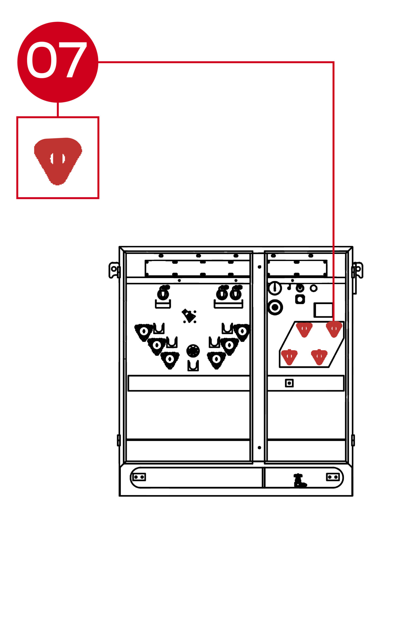 Cabinet Lock – The cabinet lock on a three-phase padmount transformer